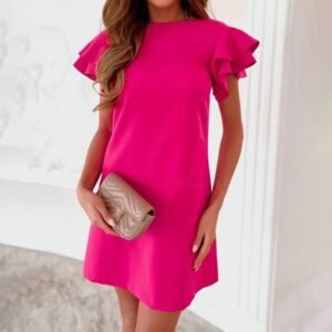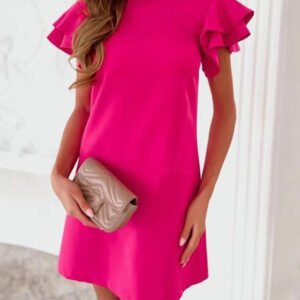 Rose Red Flutter Sleeve Plain Mini Dress