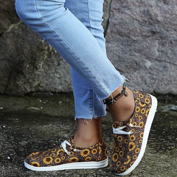 Casual Flat Canvas Shoes Flowers Lace-up Flowers Print Loafers Women Walking Shoes