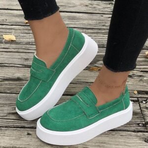 New Loafers Platform Round Toe Slip-on Shoes For Women Outdoor Casual Walking Shoes