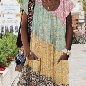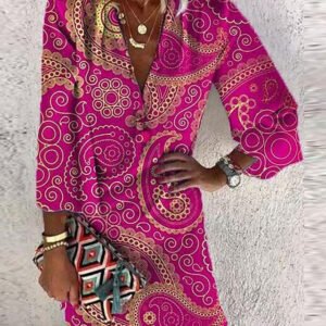 Elegant Print Short Sleeve Mini Dress