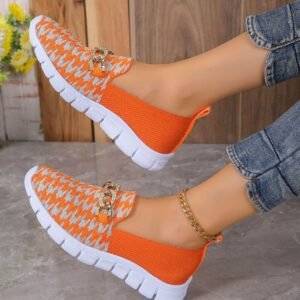 Casual Houndstooth Print Chain Mesh Shoes Summer Walking Sports Flat Shoes Women Breathable Loafers
